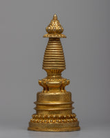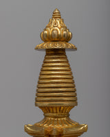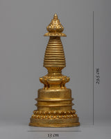 This Stupa is handcrafted with unique details and plated with gold for Nourishment and Restraint in your life.