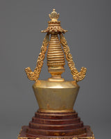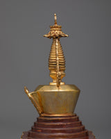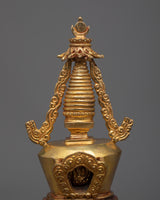 Marvel at our striking Buddhist Shrine Stupa! Expertly crafted on a Copper body and adorned with regal 24k Gold Plating , this shrine stupa stands for reverence and enlightenment.