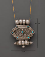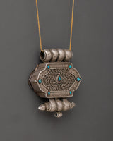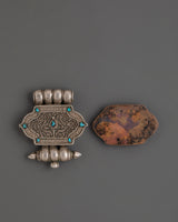 Buddhist Silver Ghau Box Locket with Turquoise Stone Inlay