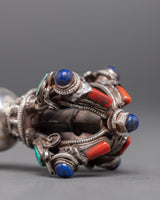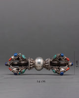 A heavily decorated Silver Vajra, hand-carved and definite, is plated with pure silver. This particular item accompanies real gemstones. This silver vajra will be a significant gift to your companions, friends, family, and yourself.