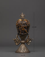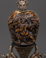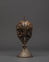 This White Metal Buddhist Stamp with Deity Figure is a finely crafted ceremonial stamp is designed to enhance sacred rituals, mantra applications, and spiritual imprinting. Standing 25 cm tall and made from white metal combined with fiber, it offers both resilience and elegance. The intricately carved deity figure embodies divine energy and spiritual authority, making each impression a powerful symbol of blessing and protection. Weighing 0.68 kg, its balanced weight ensures stability and precision during use, allowing practitioners to confidently incorporate it into spiritual ceremonies or shrine offerings. This stamp is an essential tool for those seeking to deepen their ritual practice with authenticity and reverence.