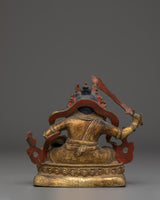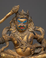 Dzambhala is a protective deity associated with wealth and prosperity. Many forms and traditions are associated with this wealthy deity, but he is usually depicted as yellow in color and holding a mongoose in his left hand. This statue has accurate traditional iconography and fine details.