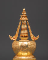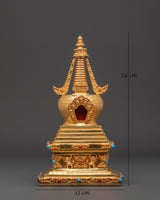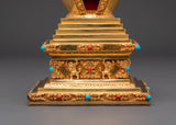 Buddhist Stupa Altar Decoration | Gold Plated & Turquoise Stones Inlaid