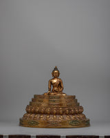 The Buddhist Stupa Statue is a masterwork of intricate beauty and spiritual importance. It is skillfully created from copper and plated with gold. This specific stupa, called the Lotus Stupa, has a unique design that divides it into two independent halves.