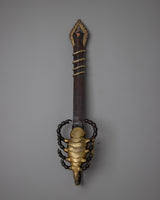 Enhance your collection with the Buddhist Sword, a work of spiritual art hand-forged from iron and adorned with silver, copper, and brass. This exquisite artifact is more than just a piece of art; it represents protection, wisdom, and the path to enlightenment, combining strength with sacred symbolism to inspire and guide.