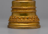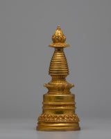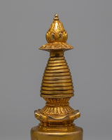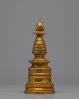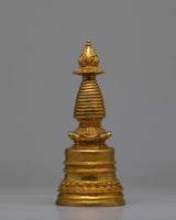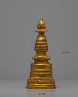 The Buddhist Symbol Stupa, which was painstakingly crafted with every detail in mind, is evidence of the rich spiritual legacy of Buddhism. This sacred item, which is handcrafted from Copper and beautifully plated in gold, represents the deep lessons and meaning of Buddhism. The stupa, which is 8 cm wide and 19 cm high, is a highly valued symbol of enlightenment that invites followers to develop inner calm and a deeper comprehension of Buddhist philosophy .