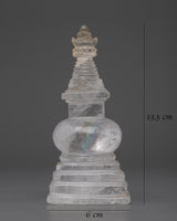 The Buddhist symbol, the Stupa, is a beautiful ornamental item and a potent sign of spiritual commitment, making it the perfect choice for spiritual seekers, art collectors, and aficionados. This Crystal stupa inspires thoughtful reflection and reverence whether it is positioned as a prominent focal point in any room, on a holy altar, or in a meditation area. Its artistic beauty and spiritual symbolism enhance any surroundings and is a treasured addition to any collection or sacred space. This stupa is an important artifact representing fine craftsmanship and deep spiritual values, not just a pretty decoration.