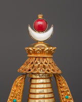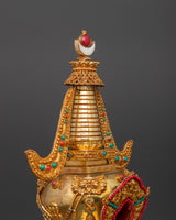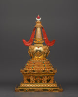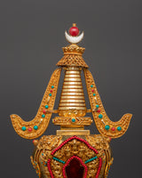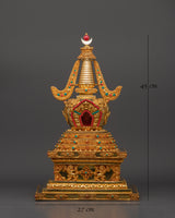 Handcrafted Buddhist Tibetan Religious Stupa | Gold Plated Copper with Turquoise & Coral Inlays