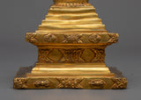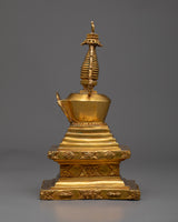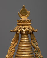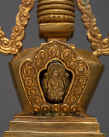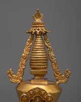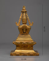 Uncover the beauty and grandeur of our Buddhist Tibetan Stupa, skillfully crafted by hand to capture its spiritual essence. This stupa stands 23cm tall and 13cm wide, weighing 1.57kg. Its Copper body is coated in 24k gold.