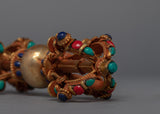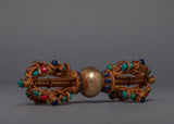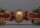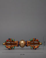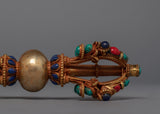 Tibetan Dorje represents the indestructibility and efficiency that overcomes all obstacles. Symbolically, Dorje Vajra destroys ignorance. In Tibetan Buddhist rituals, the vajra is often used with the bell, representing the masculine and the feminine, the ying and the yang, the effective action, and the compassion. The shape of the Tibetan Dorje is symmetrical, the two pyramidal heads representing samsara and Nirvana, which cancel each other out in its center thanks to the ring of Emptiness. Having a Dorje at home would have positive virtues against the various attacks we suffer.