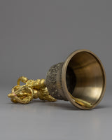 The vajra, symbolizing indestructibility and spiritual power, is expertly designed with intricate brass detailing, while the bell, crafted from silver, resonates with divine vibrations when rung. Together, they create a harmonious synergy that enhances your meditation and ritual experiences.
