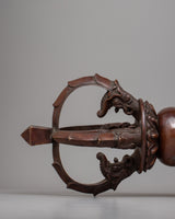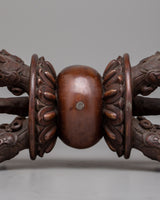 Presenting the Buddhist Vajra Dorje, painstakingly crafted from oxidized copper and adorned with an exquisitely carved premium vajra. This holy emblem embodies the strength and spiritual force of the Vajra Dorje, a crucial tool in Tibetan Buddhism employed in ceremonies and meditation activities.