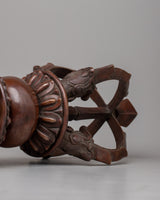 With its elaborate craftsmanship and oxidized copper finish, the Vajra Dorje is a work of art that exudes spiritual reverence and artistic skill. Each carved detail enhances the symbolic meaning of the vajra, which stands for compassion and wisdom united.