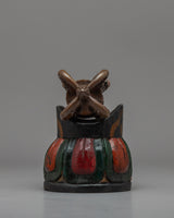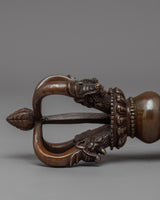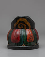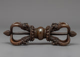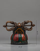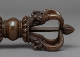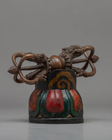 This exquisite Buddhist Vajra with stand is a lovely depiction of the sacred ritual item. To ensure quality and longevity, the Vajra and its stand are handcrafted from the finest brass and wood materials. Because of the intricate design and attention to detail, this Vajra is a  valuable addition to any Buddhist collection or practice.