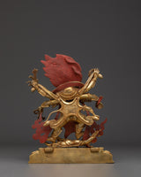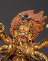 Buddhist Wrathful God Statue | Six-Armed Deity in Gold-Plated Copper