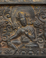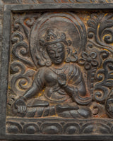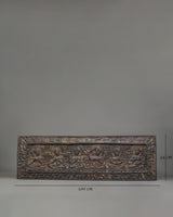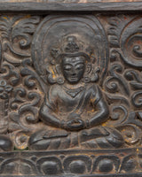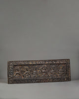 Carved Wooden Sutra Cover is a handcrafted masterpiece inspired by Tibetan Buddhist tradition. This long wooden panel, 106 cm wide and 34 cm high, is intelligently intended to protect and preserve Dharma texts, particularly palm-leaf sutras. It's great for practitioners who want to preserve precious writings while also enhancing the spiritual aspect of their altar or shrine.