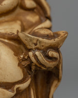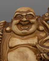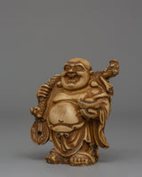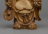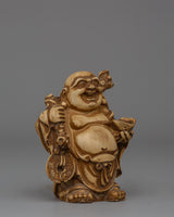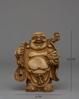 This statue, depicted with his distinctive approving smile, round belly, and prosperity symbols such as a bundle of goods and finances, represents the belief in overcoming obstacles to achieve happiness. The lightweight construction makes it ideal for giving or as a decorative element to promote happiness and well-being in any environment.