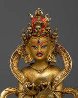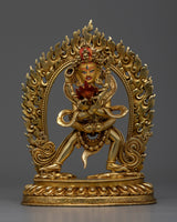 At 1.18 kilogram, this statue is strong and finely constructed, making it a treasured addition to your collection. The eternal oneness and spiritual balance of Chakrasambhara and Vajravarahi are represented by the harmonious combination of gold and copper. This statue will strengthen your connection to the teachings and benefits of Chakrasambhara, making it perfect for Buddhists, meditation aficionados, or art enthusiasts.