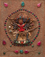 Our Chakrasamvara Wall Hanging, a work of divine art, will enhance your living space. This magnificent piece is painstakingly handcrafted on a copper body with exquisite silver plating, giving it a heavenly aura that mesmerizes everyone who sees it.