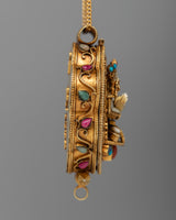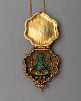 An intricate depth of spiritual richness is added by the meticulous carving of White Tara, who is revered for her healing, compassion, long life, and tranquility, inside the locket. A mystical prayer that offers the wearer protection and spiritual strength is meticulously engraved on the reverse. This Chenresig Ghau Box Locket is more than simply a piece of jewelry; it's a personal haven, a marriage of beautiful craftsmanship with heavenly protection, perfect for anybody who wants to keep their blessings and prayers near at hand.