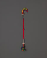 This type of chupsel is commonly used in Tibetan spiritual practice, where it is typically adorned with prayer beads, malas, or sacred artifacts. The vibrant, colorful threads represent energy and blessings, while the white metal beads lend a sense of elegance and heritage. This handcrafted sculpture combines cultural craftsmanship and spiritual meaning to enhance your meditation or altar setting.