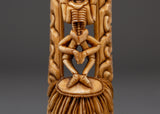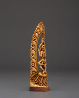 This finely handmade Citipati Bone statue is 15cm tall and 4.5cm broad, constructed of ethically sourced yak bone and placed on a wooden base. Weighing only 0.054kg, the lightweight sculpture represents the skeletal protector deity in a contemplative stance, surrounded by beautiful flame-like carvings. Its beautiful craftsmanship and natural materials make it a unique spiritual relic for collectors and practitioners.