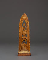Citipati figures in Tibetan Buddhism represent the endless cycle of life, death, and reincarnation. The statue, shown here in a sitting yoga stance with hands raised in prayer, illustrates the acceptance of impermanence and transformation beyond the physical form. The intricate carving emphasizes the bones and skull, encouraging thought on mortality and spiritual liberation.