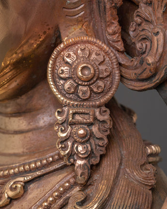 Every element of this Green Tara sculpture demonstrates spiritual artistry and profound symbolism. The lotus flowers on her shoulders represent purity and enlightenment, while her open hand gesture represents generosity and compassion for all beings. The statue's peaceful look and beautiful adornments represent her protective character and merciful attitude. Displaying this sacred figure in your house or shrine brings blessings of protection, compassion, and spiritual development.
