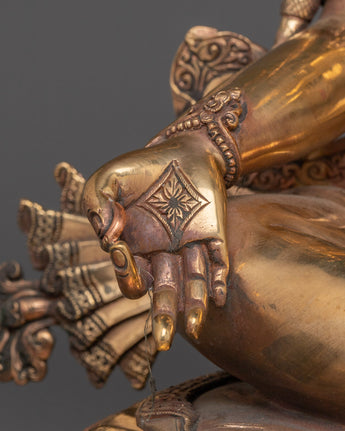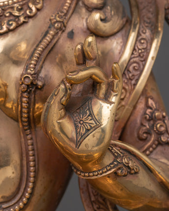 The Compassion Deity Green Tara Statue depicts the beloved goddess Green Tara, who is regarded in Tibetan Buddhism as the embodiment of compassion, protection, and swift assistance. Known as the "Mother of Liberation," she is frequently invoked to help people overcome fear, obstacles, and suffering while also bestowing calm and insight. This statue depicts Green Tara in a graceful resting pose, radiating tranquility and divine feminine energy, making it an excellent centerpiece for altars and meditation rooms.