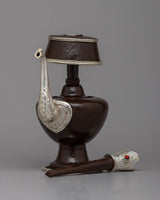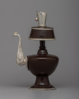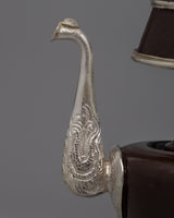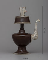 Water is essential in both Hindu and Buddhist rites, and it is always present on the altar, either in a pricey pot or in another container. Bhumba is a pot with the shape of a flat jar and a pipe to draw out the water from the pot that is elaborately embellished with valuable stones and metal.