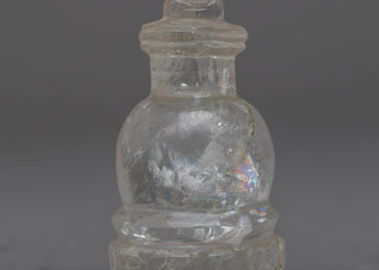 Behold the beauty of our handcrafted Crystal Stupa, meticulously crafted on a mesmerizing Crystal stone. With a length of 12cm, this exquisite piece exudes elegance and radiates a sense of tranquility. The delicate details and precise craftsmanship make it a truly unique and enchanting addition to your spiritual or decorative collection. Its translucent appearance allows light to dance through, creating a captivating play of colors and reflections. Whether displayed in your meditation corner or as an eye-catching centerpiece, this Crystal Stupa is sure to captivate hearts and elevate the ambiance of any space.