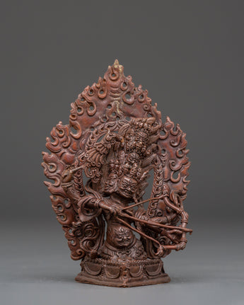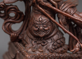 Bring profound spiritual protection into your home or meditation space with this Dharma Protector Rahula Statue. Its strong symbolism and craftsmanship make it an essential piece for those seeking to connect with Tibetan Buddhist traditions and the powerful energy of protector deities. Crafted from oxidized copper, this statue embodies the sacred balance of protection and wisdom.