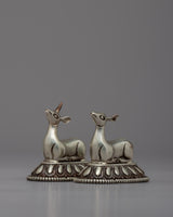 The Deer represents harmony, happiness, peace, and longevity in Buddhism. When a male and female Deer are shown together, it is a clear connection to Buddha's initial teachings near Varanasi. Buddha was a golden deer who communicated to men in one of his previous lifetimes. According to that tradition, deer are naturally modest and peaceful animals, and their presence in a location indicates the purity of a brave kingdom.