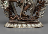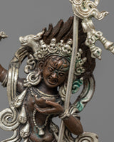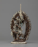 Adorned with electro silver plating, this magnificent statue of the Dorje Phagmo Sadhana is painstakingly machine-made on an oxidized copper body. With its graceful height of 19.5 cm and breadth of 12 cm, this statue radiates spiritual force and grace. It offers an enormous and significant touch to any religious location, weighing only 0.48 kg.