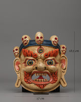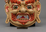 With its complex detailing and vibrant coloring, this mask reflects Tibetan deities' powerful protective energy, which is valued for its capacity to ward off negative influences and promote spiritual advancement. This mask, whether used as a meditation altar, ceremonial décor, or as a significant spiritual present, will protect and energize your environment.