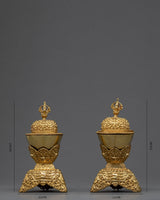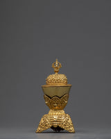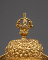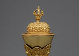 This beautiful kapala is handmade in Nepal. Our product is entirely made of handmade and plated with gold. The uppermost part of the cup holds a half vajra. This will be a great symbol to represent great bliss and a symbol of impermanence.