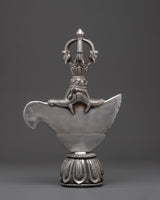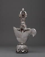 The Kartika Ceremonial Knife is a powerful emblem of Tibetan Buddhist tradition, crafted with a stunning silver body that radiates spiritual energy. Measuring 40 cm in height and 25 cm in width, it features an elegant design with clean lines and a polished finish, making it both a sacred tool and a visually captivating artifact. This ritual dagger plays a vital role in holy ceremonies, symbolizing the cutting away of ignorance and negativity. Perfect for enhancing your altar or spiritual collection, the Kartika knife invites deeper connection and reverence in your practice.