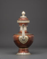 Experience the elegance of Tibetan craftsmanship with this handcrafted Tibetan Kettle, expertly made from copper and silver-plated for a refined, finish. Standing 35 cm tall, this kettle combines functionality with spiritual significance, perfect for brewing tea during rituals or as a striking decorative piece. Its traditional design captures the essence of Tibetan culture, making it a meaningful addition to meditation spaces, altars, or any setting focused on mindfulness and tranquility. Elevate your daily tea ritual and bring a touch of sacred artistry into your home with this exquisite kettle.