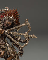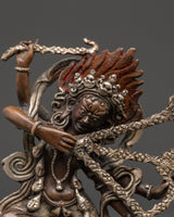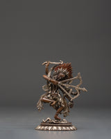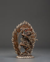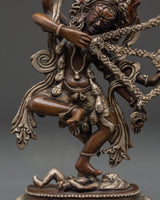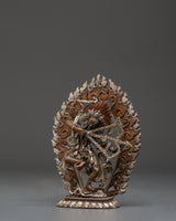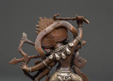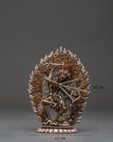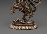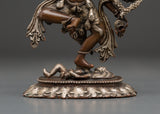 This beautifully crafted figure measures 16 cm in height, with a 12 cm base, and weighs 0.50 kg. It is great for complementing your altar, shrine, or sacred area. The combination of silver and oxidized copper highlights her divine radiance and displays excellent Himalayan craftsmanship. Each element, from her expressive stance to her spiritual jewels, reflects her energy of empowerment and attraction. This statue is more than simply a decorative piece; it is also a powerful tantric tool for meditation, ritual, and spiritual development.