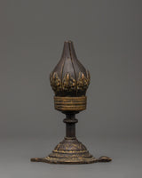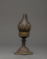 Sacred Tibetan Lotus Lamp for Altar and Ritual Use | Antique Brass Decor