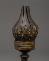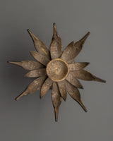 This finely handmade antique brass Lotus Light Holder is a useful spiritual art. This sacred lotus lamp is 15.5cm tall, 7.5cm wide, and weighs 1.31 kg. It is crafted of brass and has a typical antique finish. The design allows the petals to unfold like a flowering lotus, representing purity, enlightenment, and spiritual awakening.