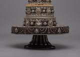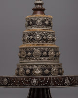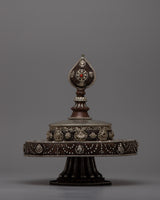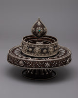 The word Mandala can be broken into two sections: maṇḍa implies the 'quintessence' or 'center and surroundings,' and la signifies 'grabbing hold of.’ It shows the natural balance of the outer world and the inner mind and can also be part of the daily preliminaries of meditation. It represents a combination of Buddha’s enlightened mind and body and is considered a great power. Mandala offering is a powerful custom practice in Tibetan Buddhism.