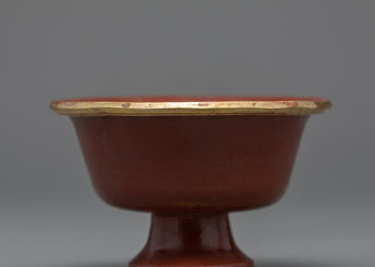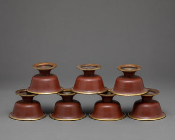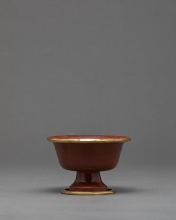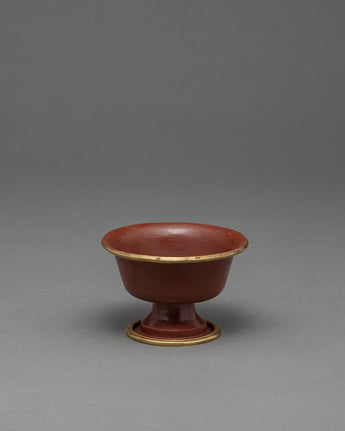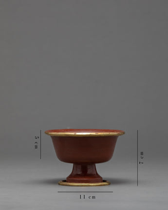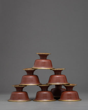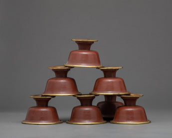 Our Offering Bowl is perfectly handmade, made of copper, and are gold plated around the rims at the top and the bottom. These exquisite handcrafted bowls are created on stemmed stands, made of copper on the inside and outside, and are widely used for ceremonial purposes. They are arranged to form the "seven offerings".