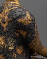 The Oxidized Shakyamuni Buddha Figurine is a stunning representation of enlightenment and compassion that will elevate your spiritual practice. This statue, which was created with unmatched skill, is proof of the greatest caliber of spiritual artistry. Standing 18.3 inches tall and weighing 7.92 kg, it exudes a sense of peace and grandeur that inspires awe in any hallowed place. It is made of oxidized copper and has acrylic paintings, 24K gold plating, and an ancient aura of wisdom and compassion that invites you to connect with its transformational energy.
