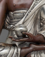 Oxidized Silver-Plated Shakyamuni Buddha Figurine | Sage of Shakya Clan