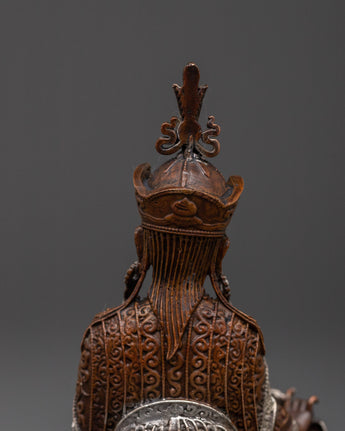 This small statue is ideal for meditation rooms and altar decor, serving as a potent symbol of protection and enlightenment. Its traditional Tibetan design and intricate detailing make it a cherished heirloom or a spiritual gift for personal devotion. Ideal for people looking to engage with Tibetan Buddhist teachings. The statue serves as a reminder of his teachings and blessings, which improves spiritual focus, protection, and inner change during meditation and ceremonies.