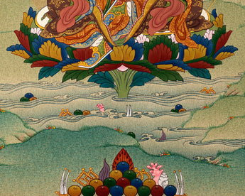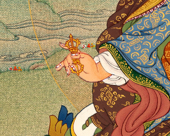 Padmasambhava Thangka | Tibetan Thangka in Natural Stone Color & 24K Gold