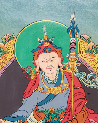 Tibetan Padmasambhava Wall Hanging | Hand-Painted Wooden Thangka with Acrylic Colors