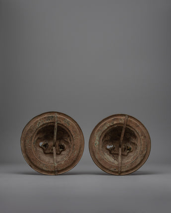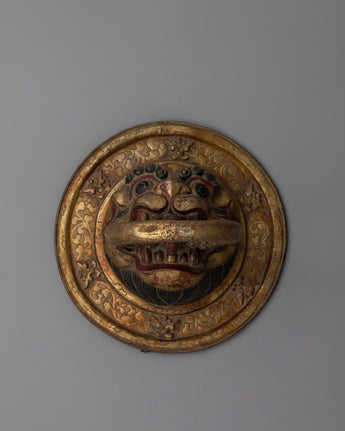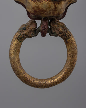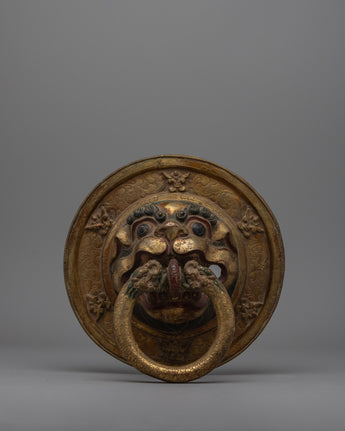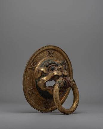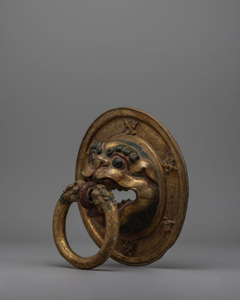Pair of Buddhist Lion Head Door Knockers | Exquisite Repousse Work on Copper Body