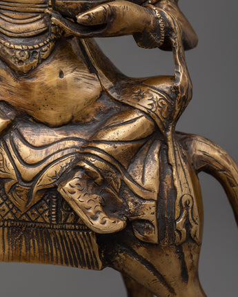 Casting from high-quality brass, the statue exudes an aura of strength and enlightenment. Palden Lhamo, with her fierce countenance and majestic presence, is a symbol of unwavering determination and compassion.